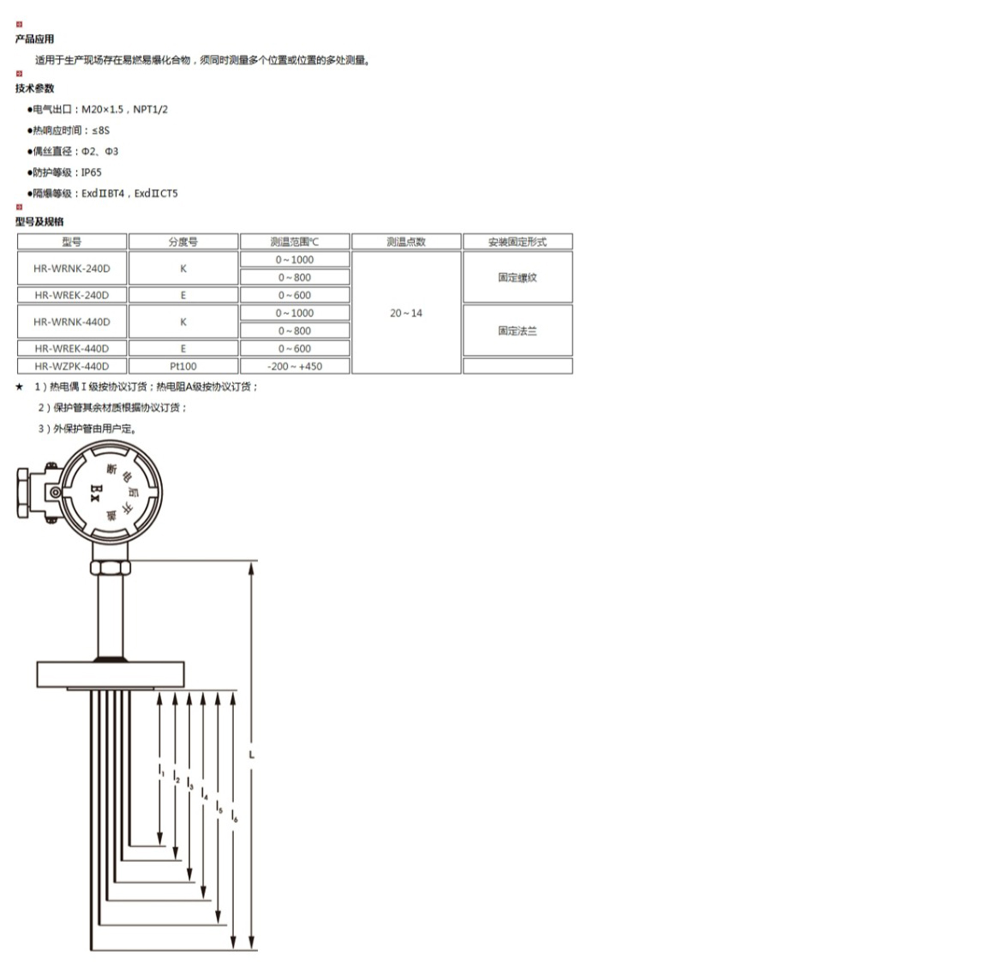 多點隔爆熱電偶(阻)